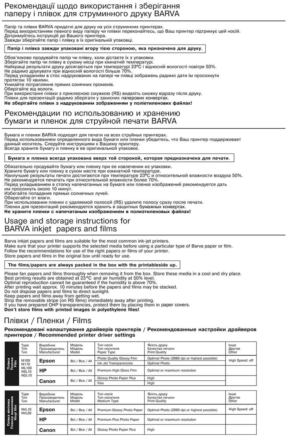 Плівка абсолютно універсальна та призначена для друку на будь-якому струменевому принтері чи БФП будь-якого виробника.