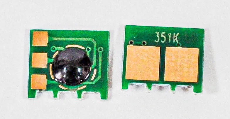 Что такое чип для картриджа? Это небольшая по размеру микросхема, в которую вшита информация о ресурсе самого картриджа, обеспечен функцией обмена данными с принтером. Проще говоря, благодаря чипу аппарат может посчитать количество отпечатанных страниц. В момент, когда счётчик страниц подошел к концу, вы увидите предупреждение о том, что картридж закончился и его необходимо заменить, даже если в бункере картриджа остался неиспользованный тонер.