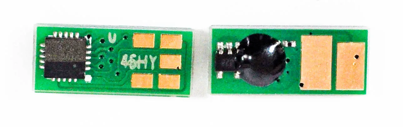 Что такое чип для картриджа? Это небольшая по размеру микросхема, в которую вшита информация о ресурсе самого картриджа, обеспечен функцией обмена данными с принтером. Проще говоря, благодаря чипу аппарат может посчитать количество отпечатанных страниц. В момент, когда счётчик страниц подошел к концу, вы увидите предупреждение о том, что картридж закончился и его необходимо заменить, даже если в бункере картриджа остался неиспользованный тонер.