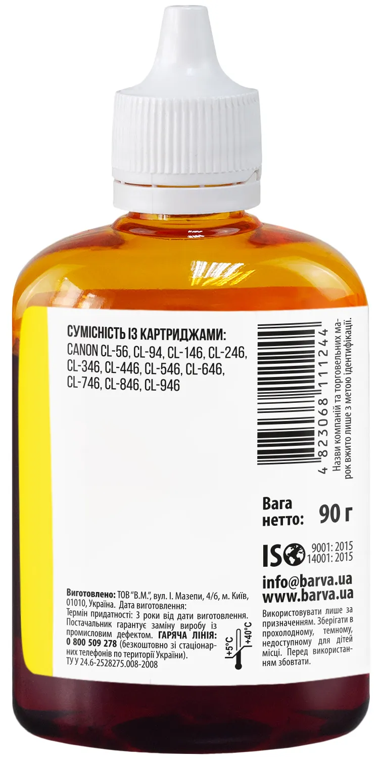 Чернила совместимые для Canon CL-446/CL-56/CL-94 специальные 90 г, водорастворимые, желтые Barva (C446-440) - заказывайте на сайте patronservice.ua