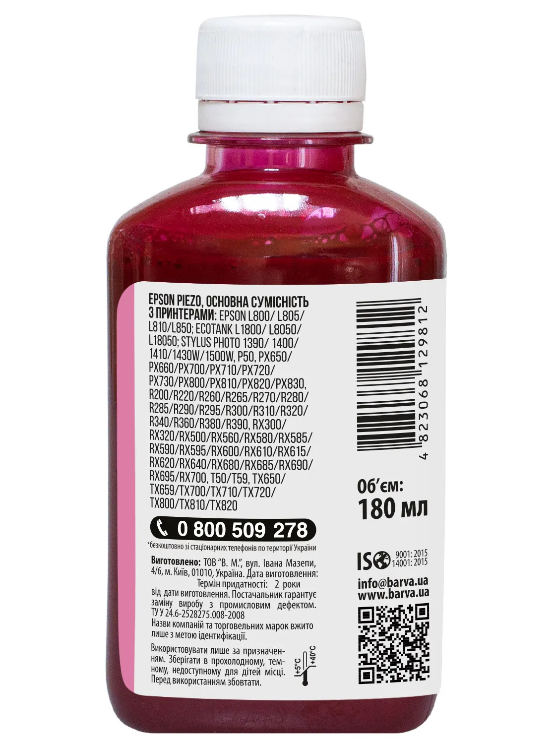 Данная краска для принтера Epson Barva имеет фасовку - 180 мл: