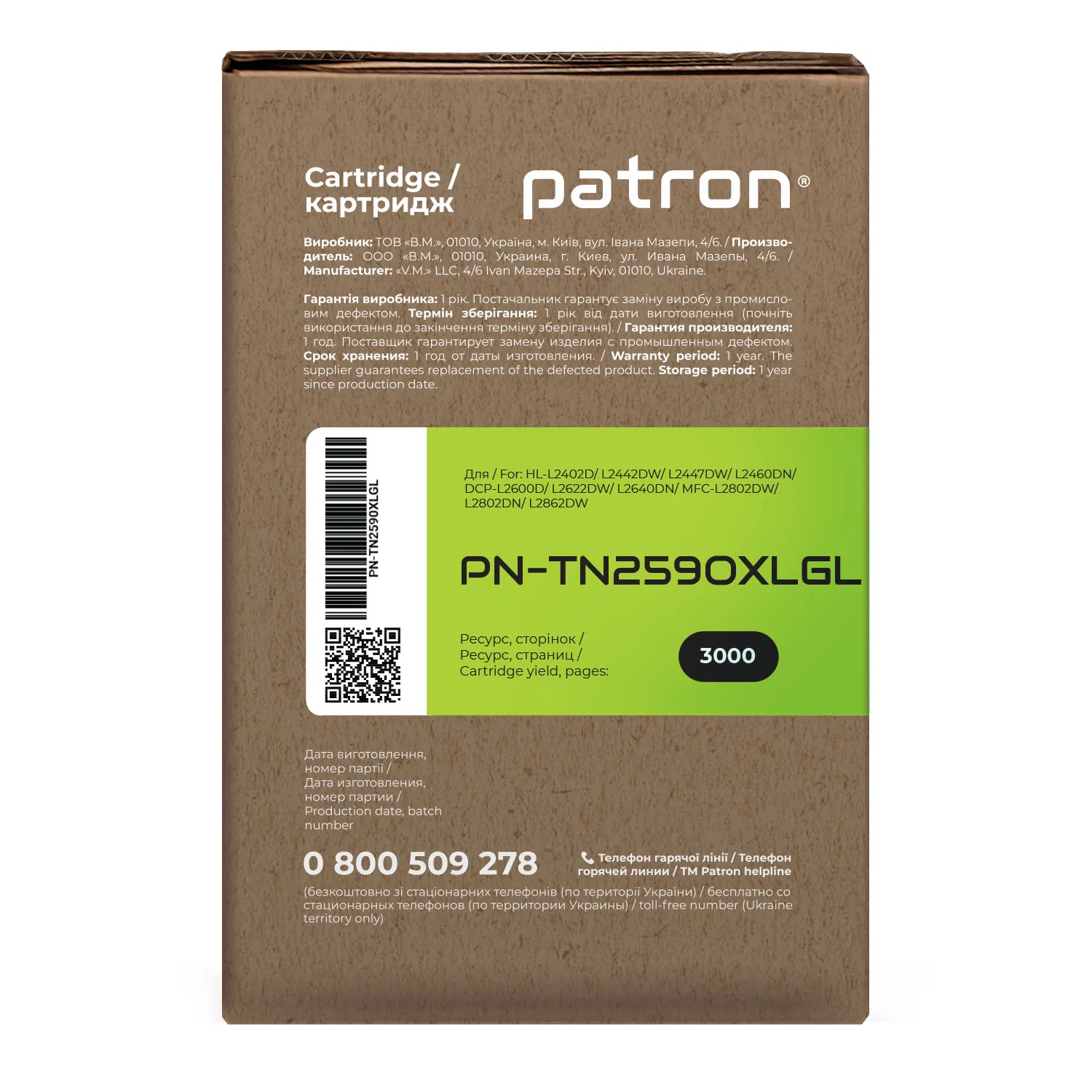 Тонер-картридж совместимый Brother TN-2590XL Green Label Patron (PN-TN2590XLGL)