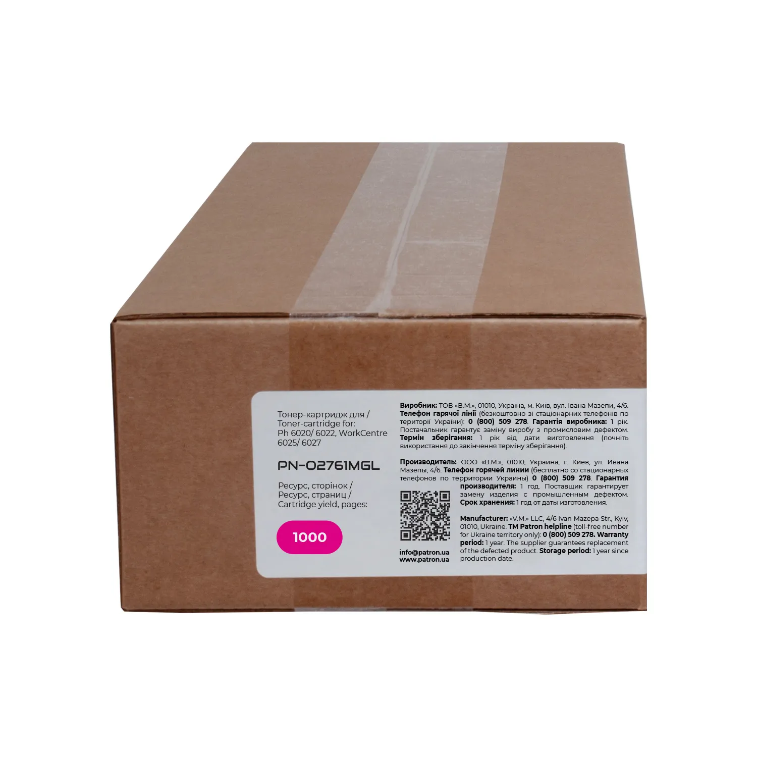 Мы позаботились о том, чтобы упаковка картриджа была не только экологичной, функциональной, имела минимально возможные физические размеры, но и содержала всю необходимую информацию. На зеленой этикетке находится информация о продукте, его совместимости с печатающими устройствами, номер партии, дата изготовления, контакты производителя, а также номер телефона бесплатной горячей линии для украинских потребителей.