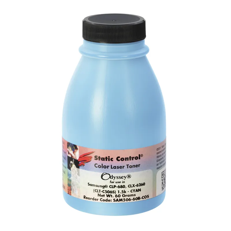 Тонер Samsung CLP-680 флакон, 60 г, голубой SCC (SAM506-60B-COS) протестирован во всех картриджах, указанных в совместимости – производитель гарантирует высокое качество печати на протяжении всего гарантийного срока..