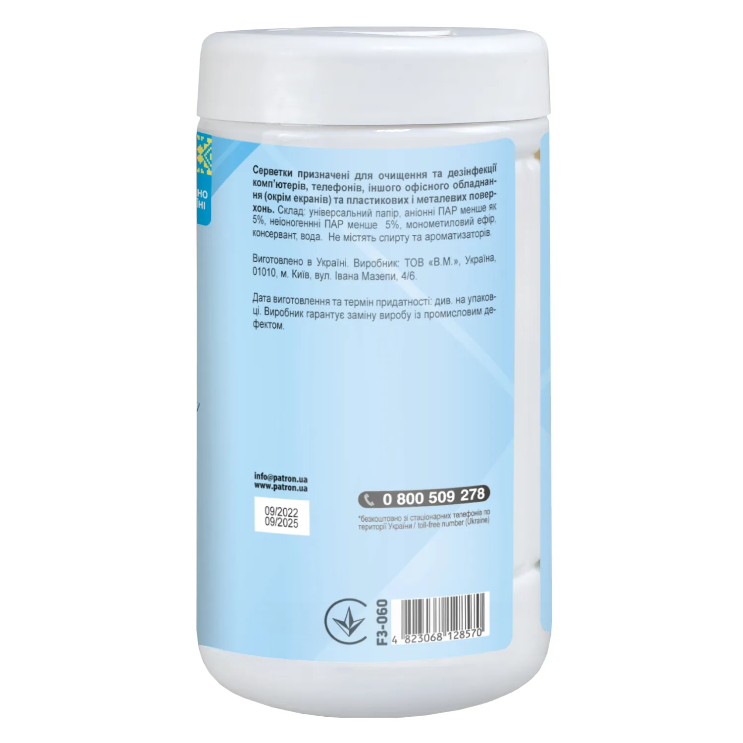 Серветки для очищення оргтехніки, туба 100 шт Patron (F3-028)