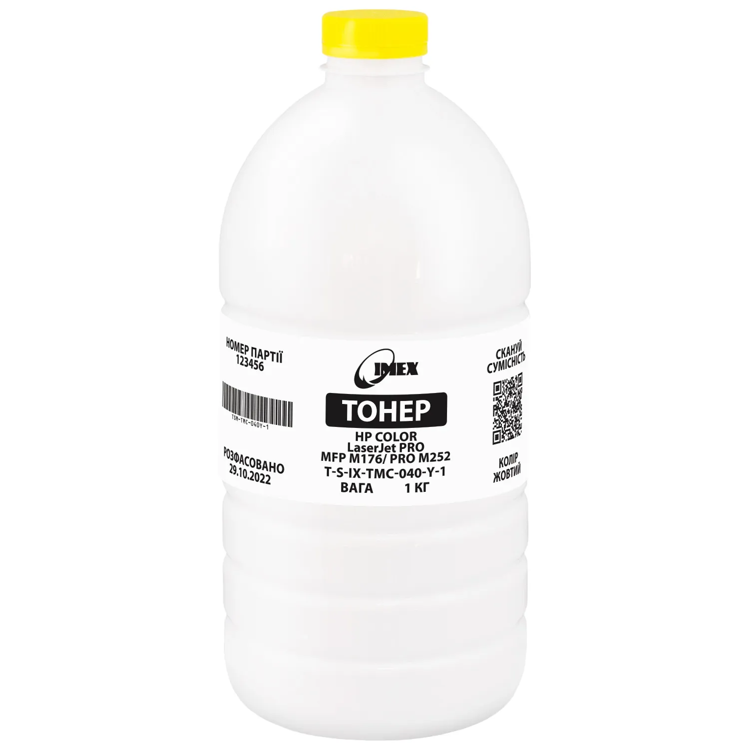 - Тонер HP Color LaserJet Pro MFP M176/Pro M252 жовтий, флакон 1 кг Imex (TSM-TMC-040Y-1)