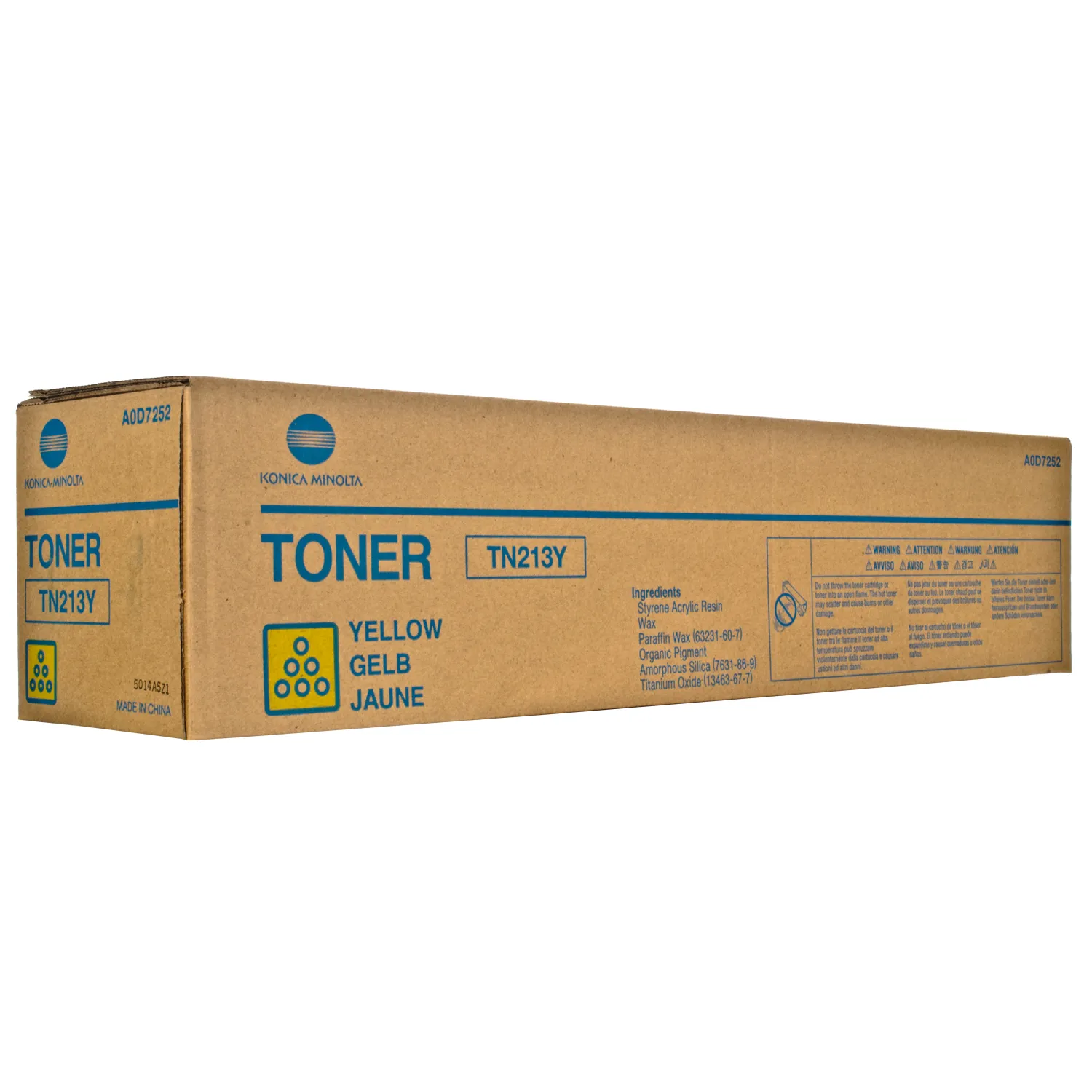 Картридж A0D7252-Y розроблений та виробляється компанією Konica Minolta, тому він є ідеальним вибором для бездоганної якості друку. Можна із впевненістю розраховувати, що оригінальний картридж для лазерного принтера Konica Minolta буде безвідмовно працювати протгом всього ресурсу – 19000 сторінок. Тонер-картридж TN-213Y жовтий Konica Minolta (A0D7252) відноситься до групи оригінальних витратних матеріалів, єдиним мінусом яких є висока вартість.