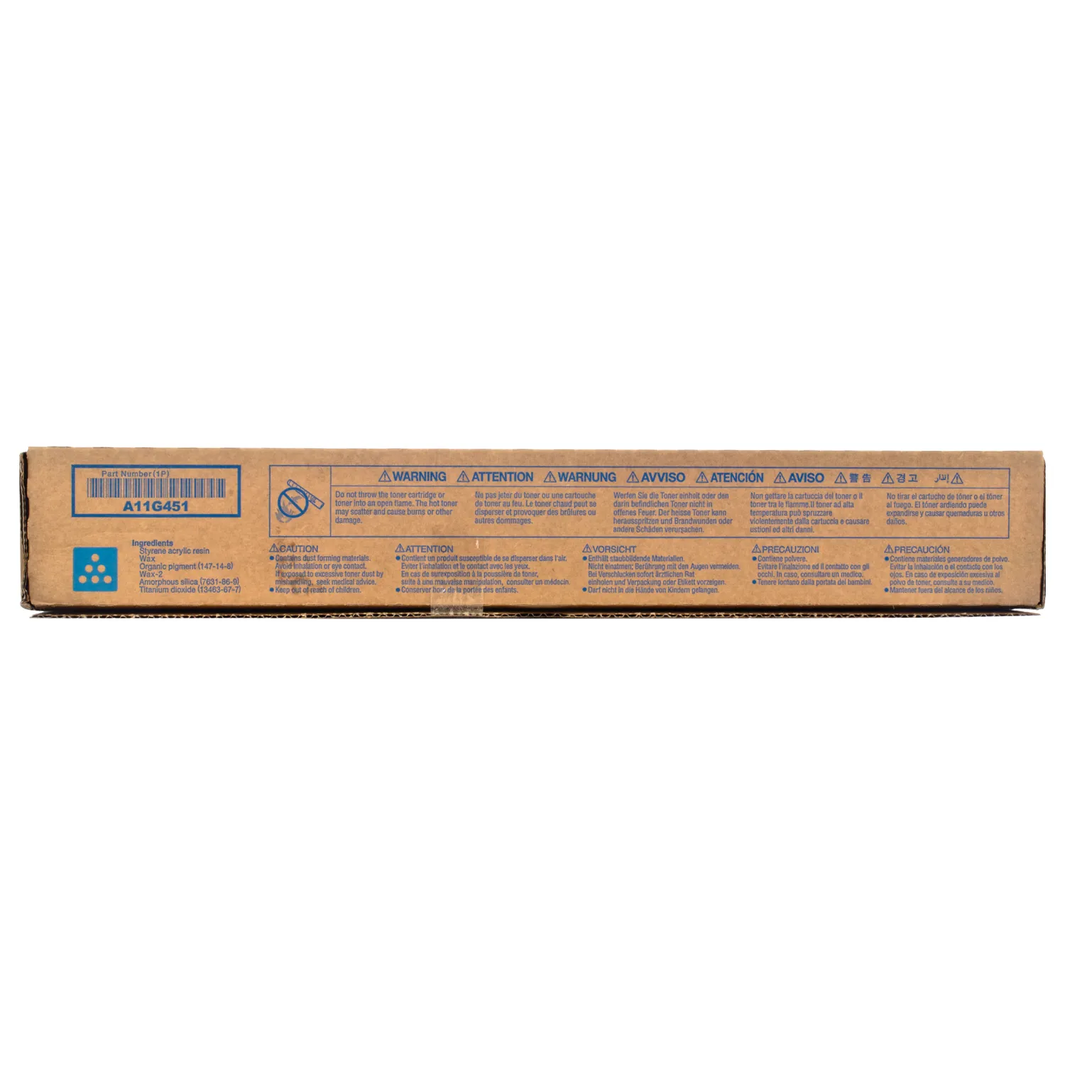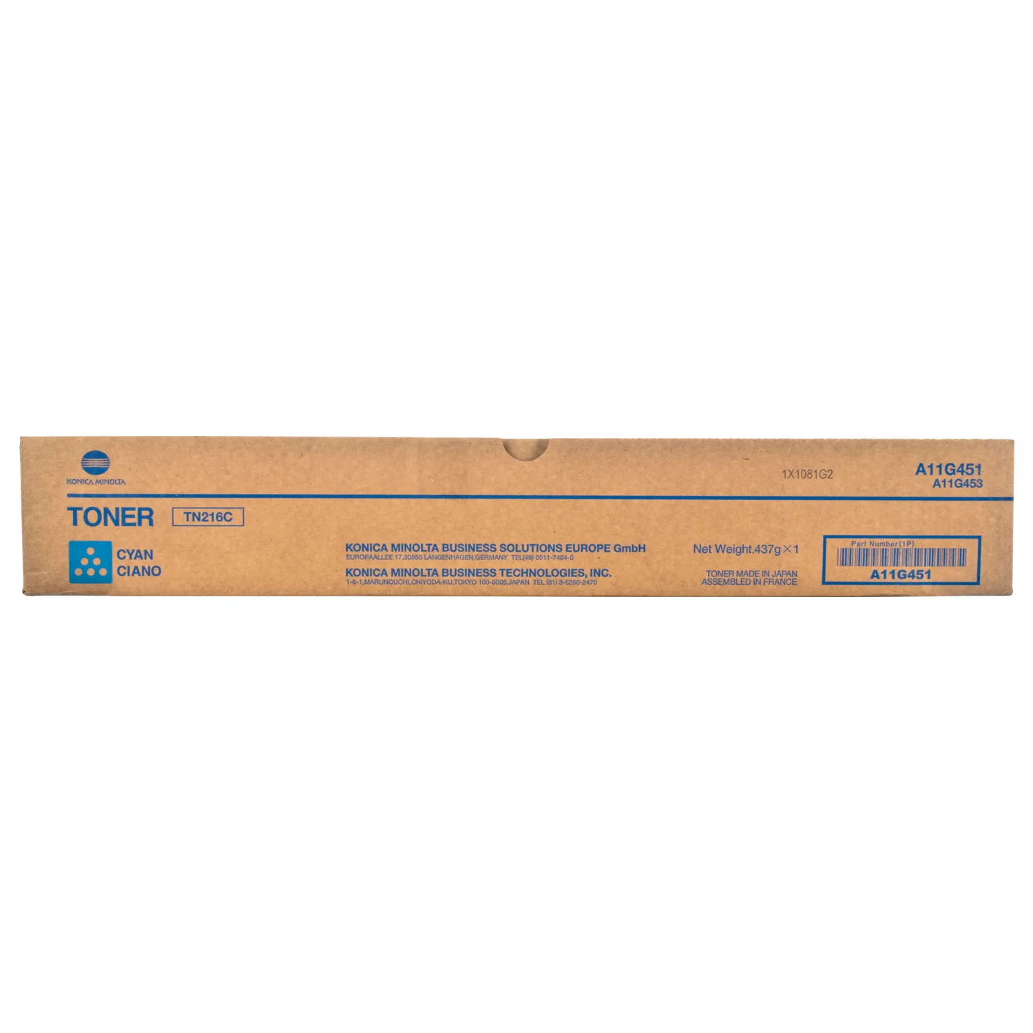 Картридж A11G451-C розроблений та виробляється компанією Konica Minolta, тому він є ідеальним вибором для бездоганної якості друку. Можна із впевненістю розраховувати, що оригінальний картридж для лазерного принтера Konica Minolta буде безвідмовно працювати протгом всього ресурсу – 26000 сторінок. Тонер-картридж TN-216C блакитний Konica Minolta (A11G451) відноситься до групи оригінальних витратних матеріалів, єдиним мінусом яких є висока вартість.