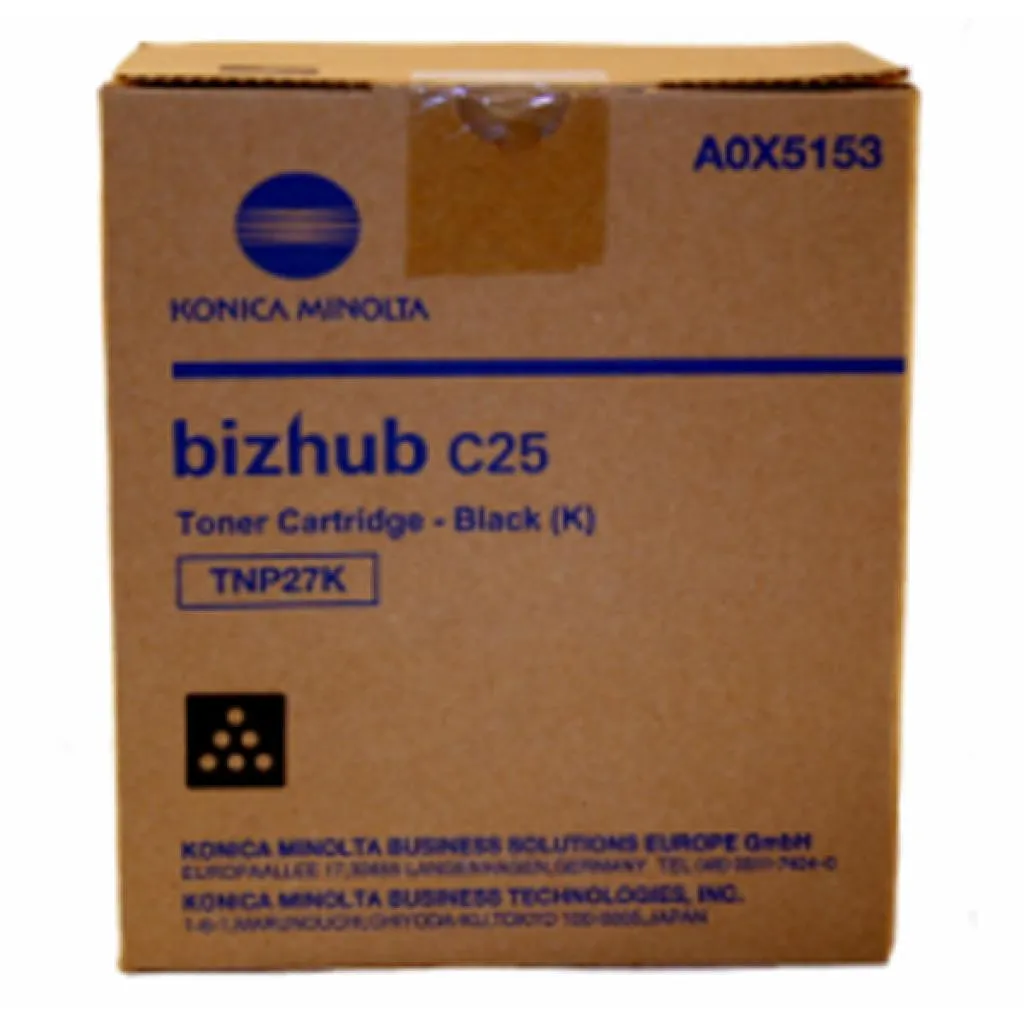 Картридж TNP-27K розроблений та виробляється компанією Konica Minolta, тому він є ідеальним вибором для бездоганної якості друку. Можна із впевненістю розраховувати, що оригінальний картридж для лазерного принтера Konica Minolta буде безвідмовно працювати протгом всього ресурсу – 6000 сторінок. Тонер-картридж TNP-27K чорний Konica Minolta (A0X5153) відноситься до групи оригінальних витратних матеріалів, єдиним мінусом яких є висока вартість.