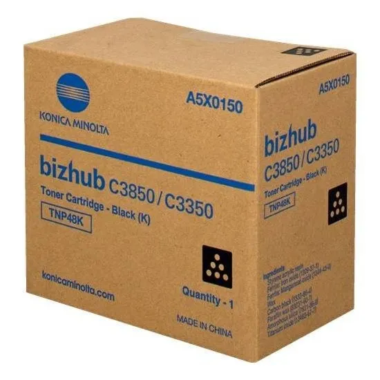 Картридж TNP-48K розроблений та виробляється компанією Konica Minolta, тому він є ідеальним вибором для бездоганної якості друку. Можна із впевненістю розраховувати, що оригінальний картридж для лазерного принтера Konica Minolta буде безвідмовно працювати протгом всього ресурсу – 10000 сторінок. Тонер-картридж TNP-48K чорний Konica Minolta (A5X0150) відноситься до групи оригінальних витратних матеріалів, єдиним мінусом яких є висока вартість.